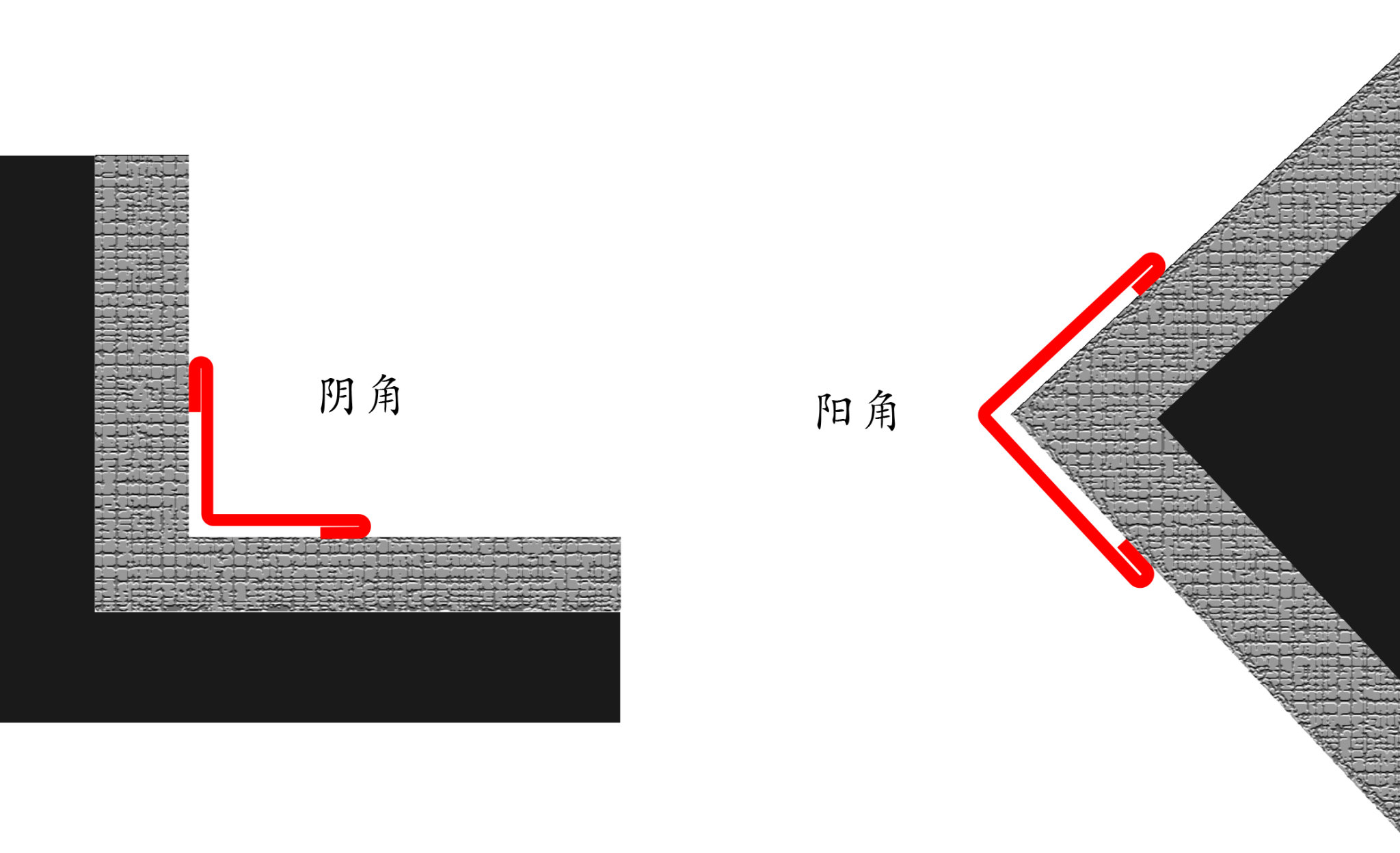 L型的金屬線條常用在陰陽(yáng)角包角的地方,直接粘上即可。